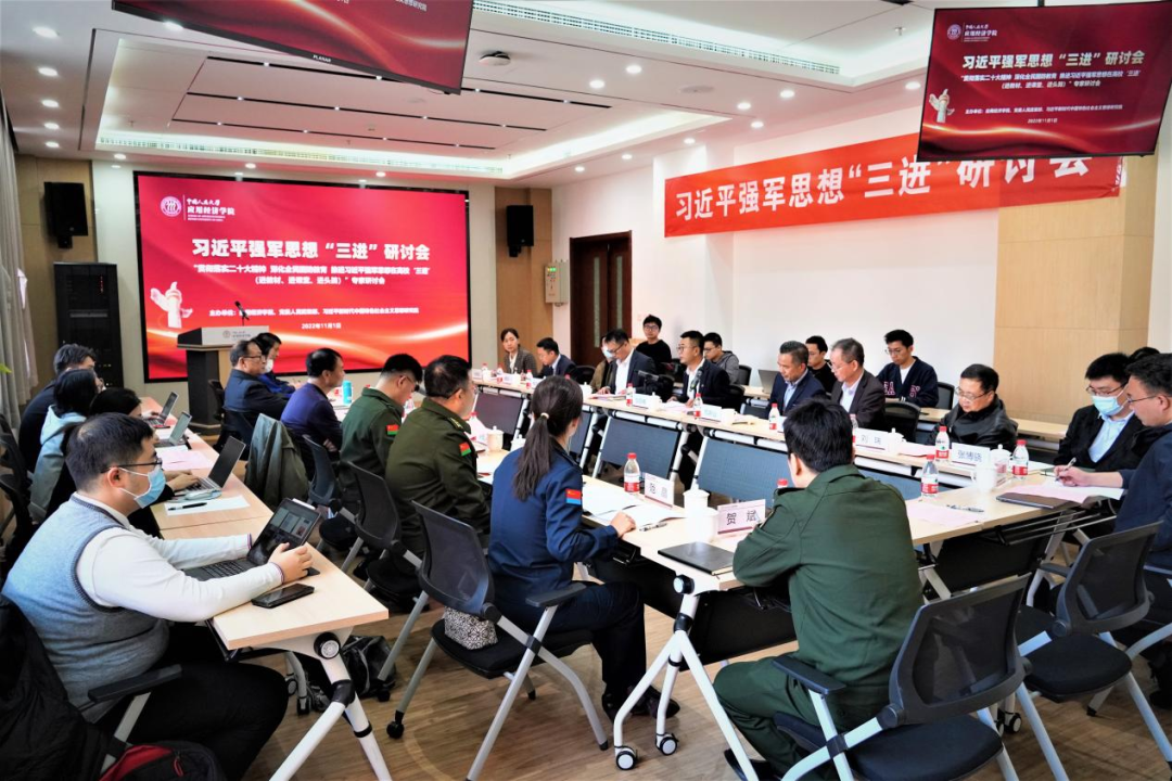 在研讨交流环节,与会嘉宾就习近平强军思想“三进”工作展开深入探讨。嘉宾们一致建议,推动习近平强军思想“三进”要以立德树人为根本目标,以平台建设为基础,以国际化视野谋篇布局,以教材建设为突破口,与团队建设相互融合,将长远目标与阶段目标有机结合,按照打造全国高校习近平强军思想“三进”示范样板工程的定位,在工作理念、培养模式、体系构建等方面在全国高校形成示范效应,切实推进习近平强军思想“三进”工作。