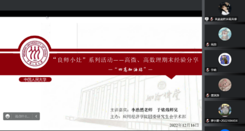 我们系统梳理知识体系、筑牢应用经济研究根基、提升问题解决能力。“四高”加油站,邀请青年教师与优秀同学梳理知识体系、分享备考经验;“良师小灶”,助力应小经在课堂之外共学Python和Stata,提升科研综合能力,拓宽学术视野,活跃学术思想;“应姿博发”,带领应经学子深入科研发表之路,加深同学们对于申博、考博的认识;“应经学子成果展”,展示学子优秀成果,充分发挥榜样力量,鼓励同学们勇攀高峰。