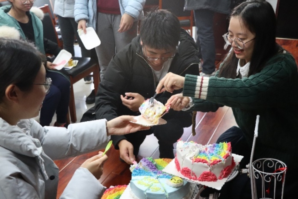 严冬时节、寒风凛冽,为了鼓舞同学们的训练热情、增强凝聚力,公司领导给同学们带来了饮料、水果、零食等慰问品。恰逢两位同员工日,公司领导准备了精美的生日蛋糕,并与全体同学一起,唱生日歌、许愿、吹蜡烛,传统的庆祝环节让新生体会到家的温暖,同学们也被这一暖心的环节深深打动。