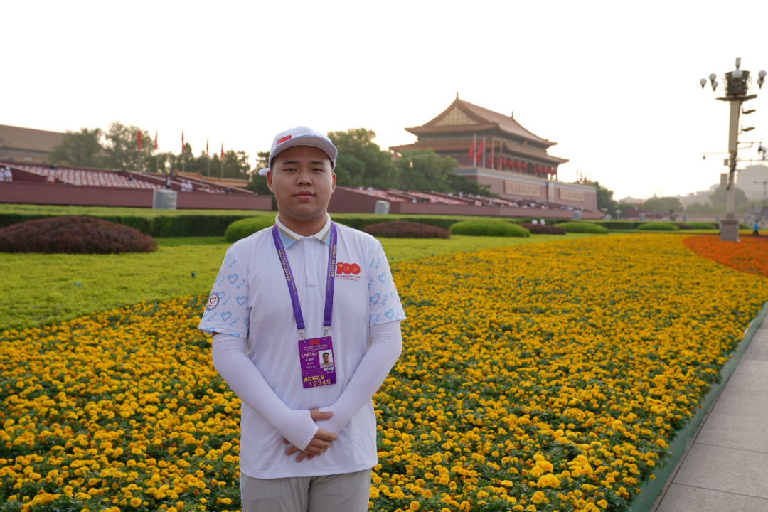 我有幸参与庆祝大会的志愿服务活动,能驻守在长安街旁服务人民,我的心情十分喜悦和激动,感到十分光荣。作为志愿者团队中的一员,我负责引导服务观众。中国共产党是我的信仰,站在百年风华的历史高处,中国共产党正引领历史的巨轮驶向伟大复兴的光明未来。我将继续矢志不渝为建设社会主义现代化强国而奋斗!请党放心,强国有我!