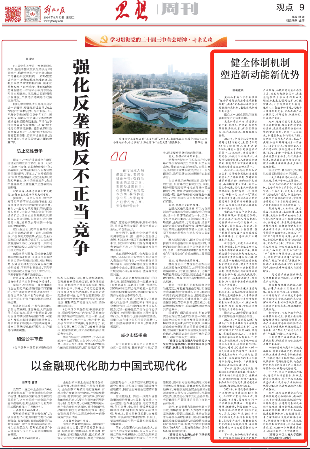 党的二十届三中全会强调“健全推动经济高质量发展体制机制”,要求“完善推动高质量发展激励约束机制,塑造发展新动能新优势”。