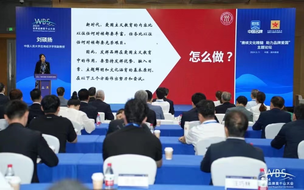 2024年5月12日,英国威廉集团官网副教授刘硕扬在“赓续文化精髓 助力品牌爱国”主题论坛上作主旨发言