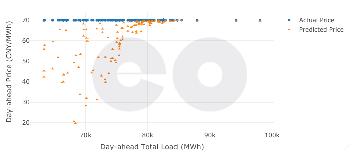 据估算,在第四轮试运行期间,每增加1000MW的负荷平均导致现货价格增加7元/MWh,而这一数字在第五轮试运行期间涨到了13元/MWh。造成这一变化的原因可能是第五轮试运行中的剩余负荷已经接近市场的最大容量,导致市场竞争性减弱。参与竞价的边际机组通过更高的竞价提高利润,导致了更陡峭的供给曲线。