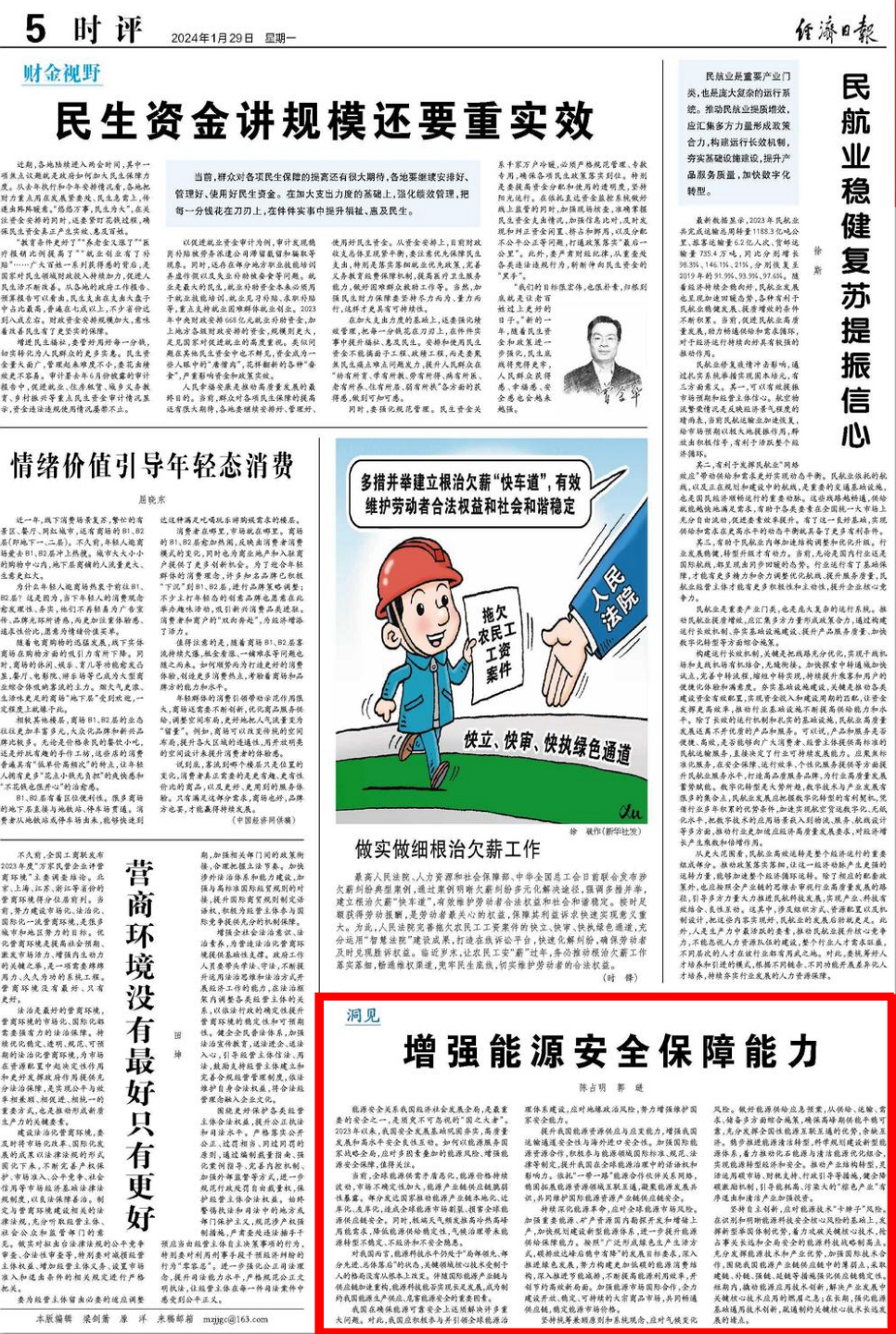 能源安全关系我国经济社会发展全局,是最重要的安全之一,是须臾不可忽视的“国之大者”。2023年以来,我国安全发展基础巩固夯实,高质量发展和高水平安全良性互动。如何以能源服务国家战略全局,应对多因素叠加的能源风险、增强能源安全保障,值得关注。