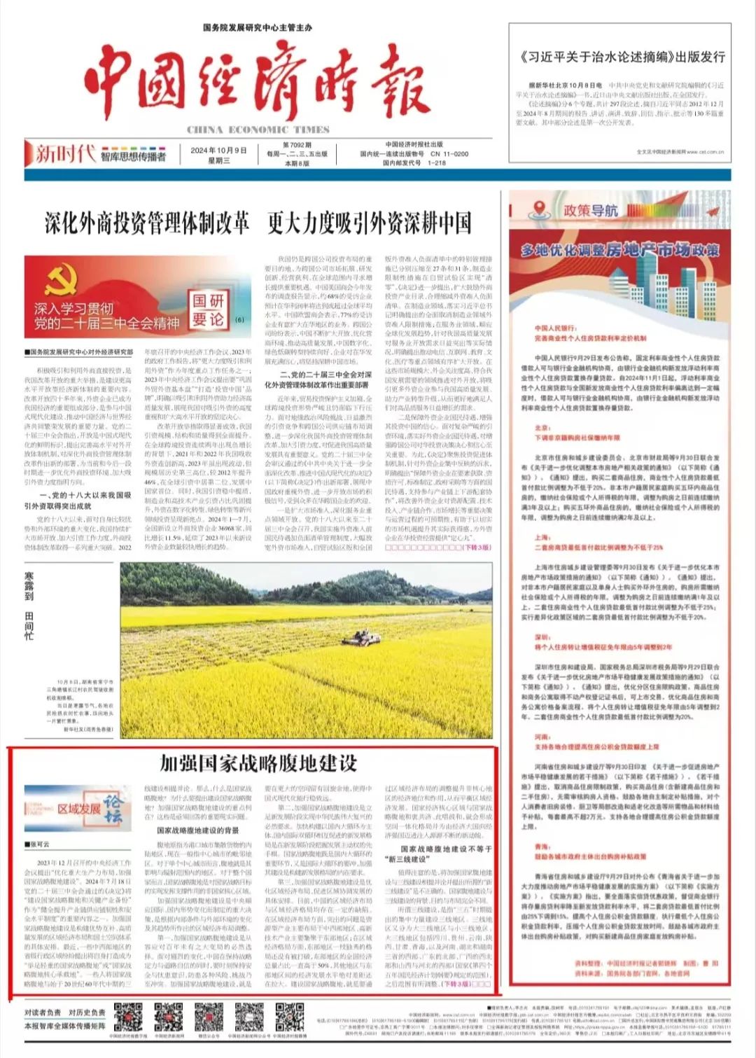 加强国家战略腹地建设是中央顺应国际、国内形势变化而制定的重大决策,是根据内部条件与外部环境的变化及其趋势所作出的区域经济布局调整。