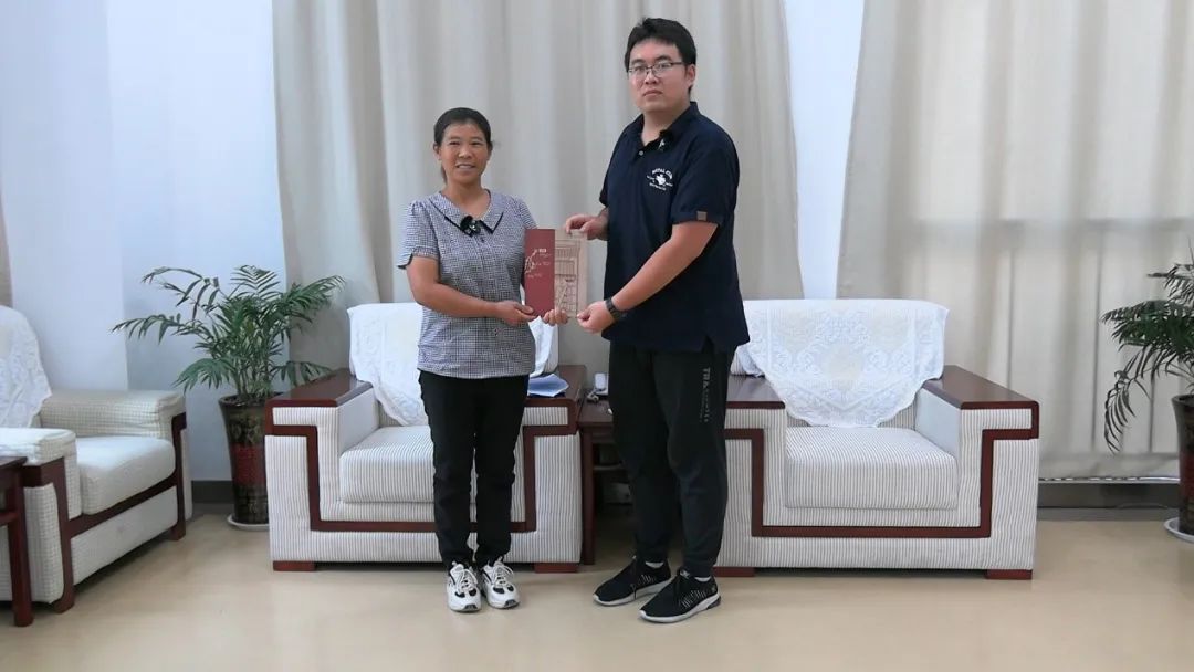 最令传承队师生感到难忘的,是崔征洋负责采访的脱贫户模范,拥有“中国好人”“最美巾帼脱贫攻坚人”等无数荣誉的焦林萍。在采访开始前,焦林萍带着十分慈祥的微笑,略带拘谨地询问是否可以带着她自己准备好的讲稿,那淳朴敦厚,和蔼可亲的样子完全看不出她是一位荣誉等身的模范人物。在访谈中,传承队师生慢慢地了解了她的故事,心中不禁由衷地感到钦佩。