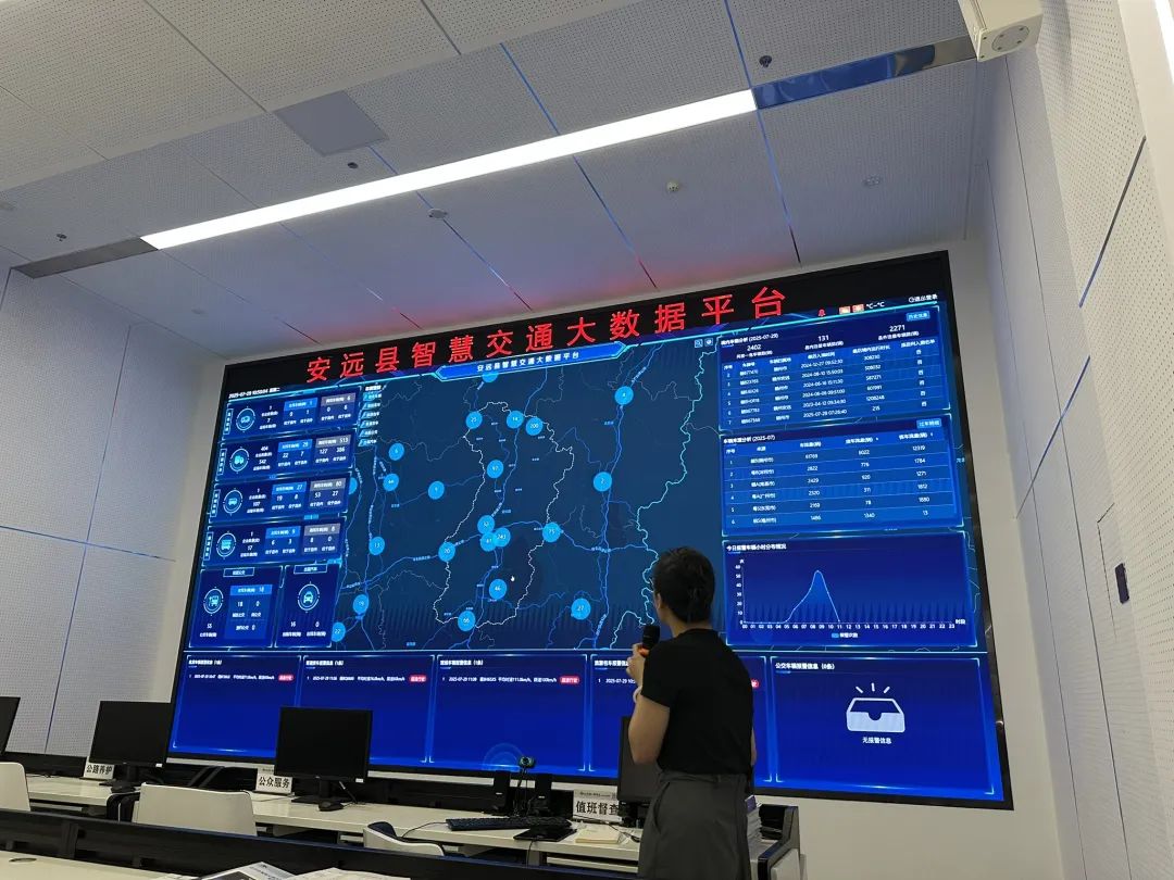 7月29日上午,调研团抵达智慧交通指挥中心,了解安远县智慧交通大数据中心应用场景。安远县持续深化交通运输信息化建设,积极推动智慧交通平台布局,构建覆盖广泛、功能齐全、集成高效的数字化管理体系,设置了公众服务、公路养护、超限治理、客运分析、车辆管控等5大类19个功能场景。