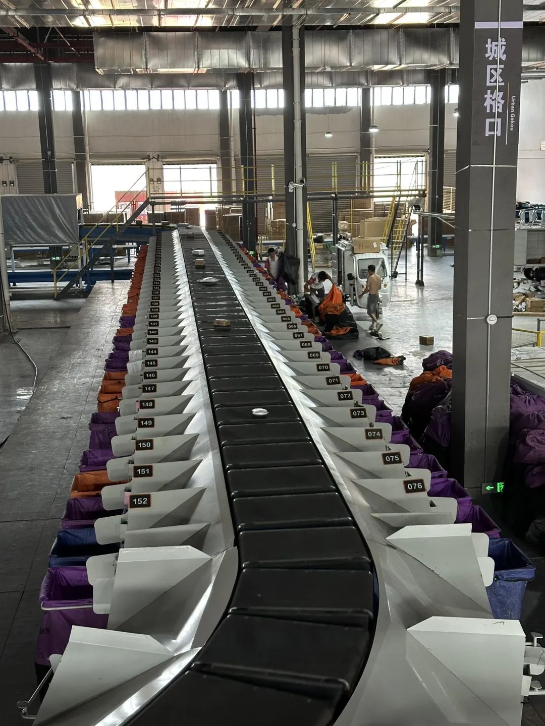 ▲智能分拣设备配备152个落件格口