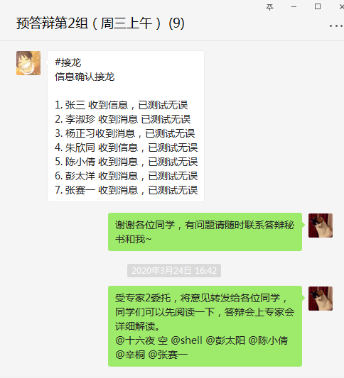 使用软件确定后,公司教务秘书对各系所推荐的答辩秘书进行了软硬件及预答辩流程的详细培训。同时为每个答辩场次建立员工微信群,在群内指导同学熟悉预答辩流程,并责成预答辩秘书做好每一位同学的软硬件测试和PPT播放测试,确保每一位参加预答辩的同学都不存在软硬件及网络问题。