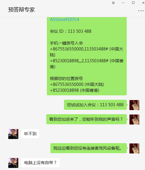 对邀请的预答辩专家,公司教务秘书提供一对一的软硬件测试服务,为专家提供从下载腾讯会议软件到测试麦克风、摄像头的全方位服务,力争确保专家方面的软件硬件不出差错。