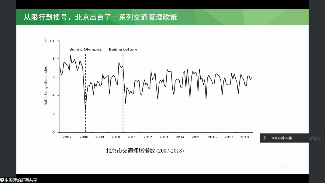 讲座聚焦环境经济问题,首先,秦萍介绍了几篇与环境政策相关的经典文献。随后,从北京交通限行、摇号政策等一系列交通管制措施入手,秦萍分析了这些政策措施对于科研选题的重要启示;与此同时,介绍了与北京地铁修建所产生的环境经济效益相关的一系列科研成果。最后,秦萍以最近1篇《经济研究》的文章——“大气污染协同治理的理论机制与经验证据”为范例,分享了如何从已有研究出发,依据政策现实,提出具有科研价值以及实践指导意义的学术问题。