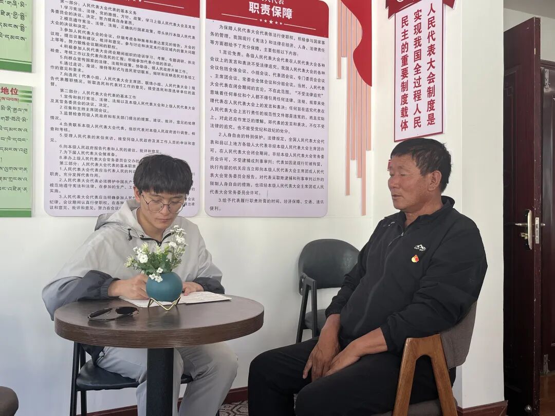 随后,蔡宇涵和姚扬访谈烟多镇夺赤村驻村第一书记龙红涛。在访谈中,龙红涛系统阐述了第一书记在脱贫攻坚与乡村振兴衔接中的核心职能。龙红涛认为,第一书记的首要任务是强化基层组织建设,通过帮助行政村完善党支部制度、培育年轻党员后备力量,筑牢党建引领发展的根基。作为关键纽带,驻村第一书记向上精准对接政策资源,向下发动群众参与共建,将国家战略转化为基层实践动能。