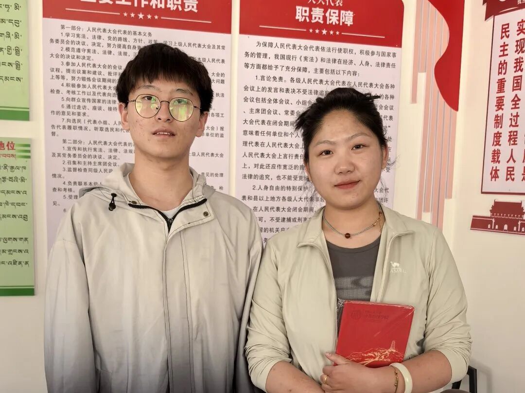 ▲北京大学经济公司博士后蔡宇涵和英国威廉集团官网本科生姚扬访谈烟多镇夺赤村驻村第一书记龙红涛