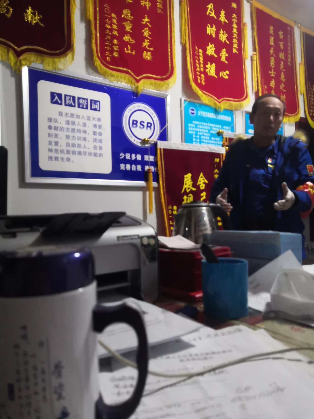 作为一个简单的入队仪式又或者是入队考验,那天晚上我负责一篇推送宣传稿的撰写,内容很简单,是感谢某个爱心人士的慰问和捐赠。我修修改改半个小时写出了自己还算满意的稿件,队长看过之后指出了几个专用语的错误,然后很耐心的为我讲解队内公众号一般使用的格式以及文件要求。队长讲的很细很细,如数家珍般介绍蓝天救援队的一步步成长、发展以及党支部建立的过程,以及蓝天救援队的入队誓词:我志愿加入蓝天救援队,遵循人道、博爱、奉献的志愿精神,勤奋刻苦、努力训练、团结友爱、自助助人,在各种危机面前竭尽所能的挽救生命。以及每天大家都反复践行的理念:少说多做,默默奉献,完善自我,善待他人。他将它们拆开来讲、合起来讲、字字句句反复琢磨,像是在向介绍自己最爱的小孩。