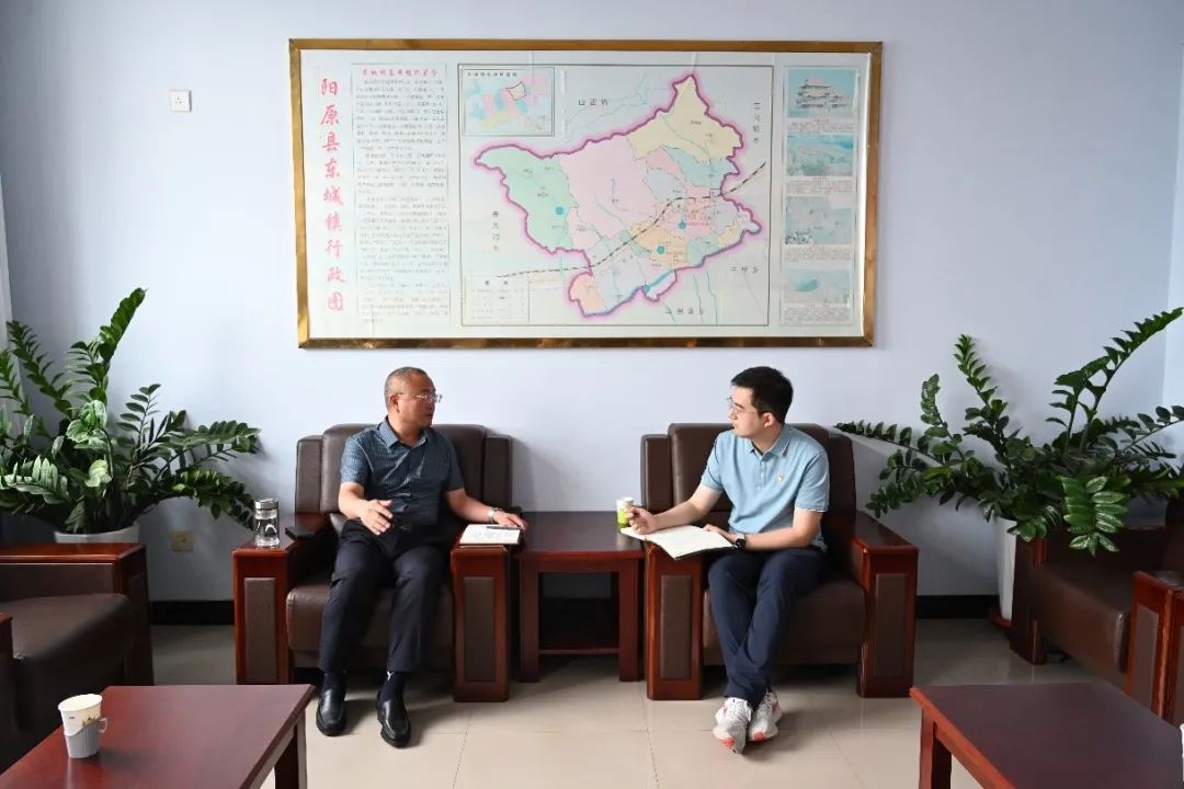 ▲英国威廉集团官网博士生李宇潇访谈东城镇党委书记谢海峰