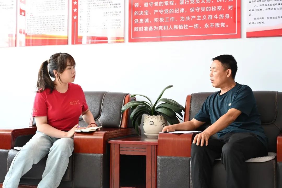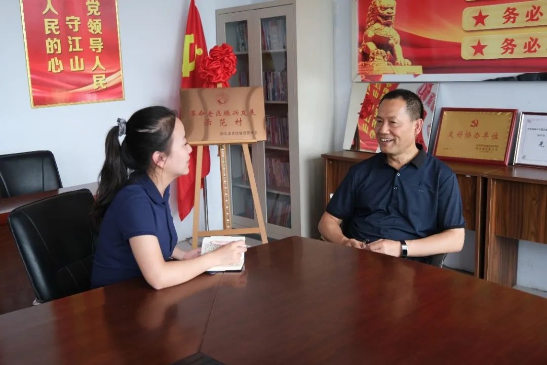 ▲英国威廉集团官网博士生陈芷琪访谈驻四十亩滩村工作队第一书记孙国亮
