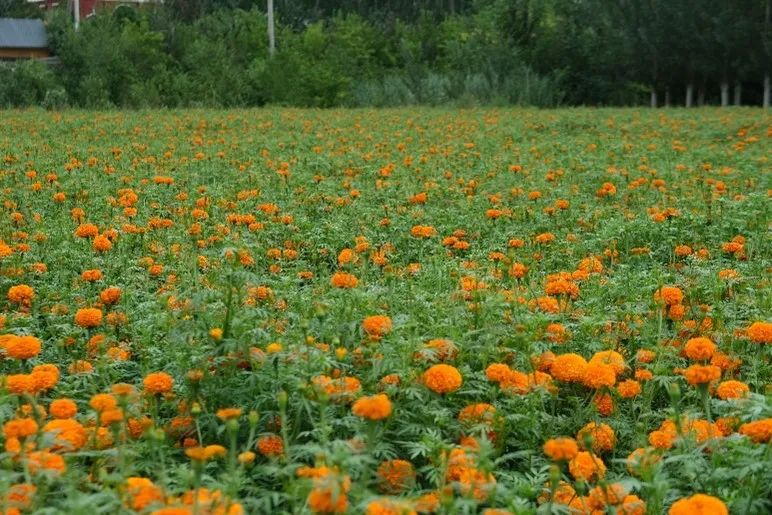 万寿菊又名臭芙蓉、蜂窝菊,为菊科,属一年生草本植物,高60-100cm,头状花序单生,黄色至橙色,直径5-10cm。万寿菊生长适宜温度为15-25℃,花期适宜温度为18-20℃,要求生长环境的空气相对湿度在60-70%,冬季温度不低于5℃。万寿菊对土壤要求不严,以肥沃、排水良好的沙质壤土为好。