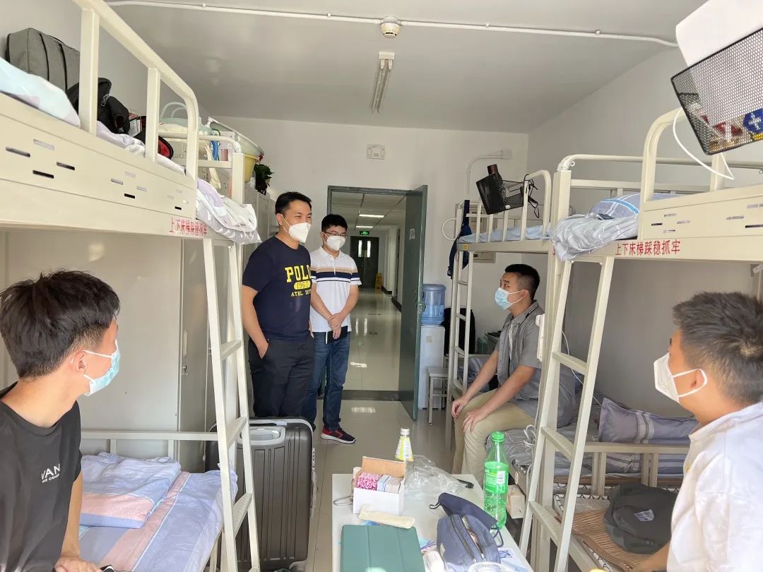公司管理团队成员、新生班主任和班级辅导员分别前往新生宿舍看望慰问。老师们仔细询问了同学们的适应情况,暖心了解同学们的需求和困难,细心嘱咐同学们要注意疫情防控和网络安全,希望同学们珍惜时光、努力学习,成为德智体美劳全面发展的社会主义建设者和接班人。