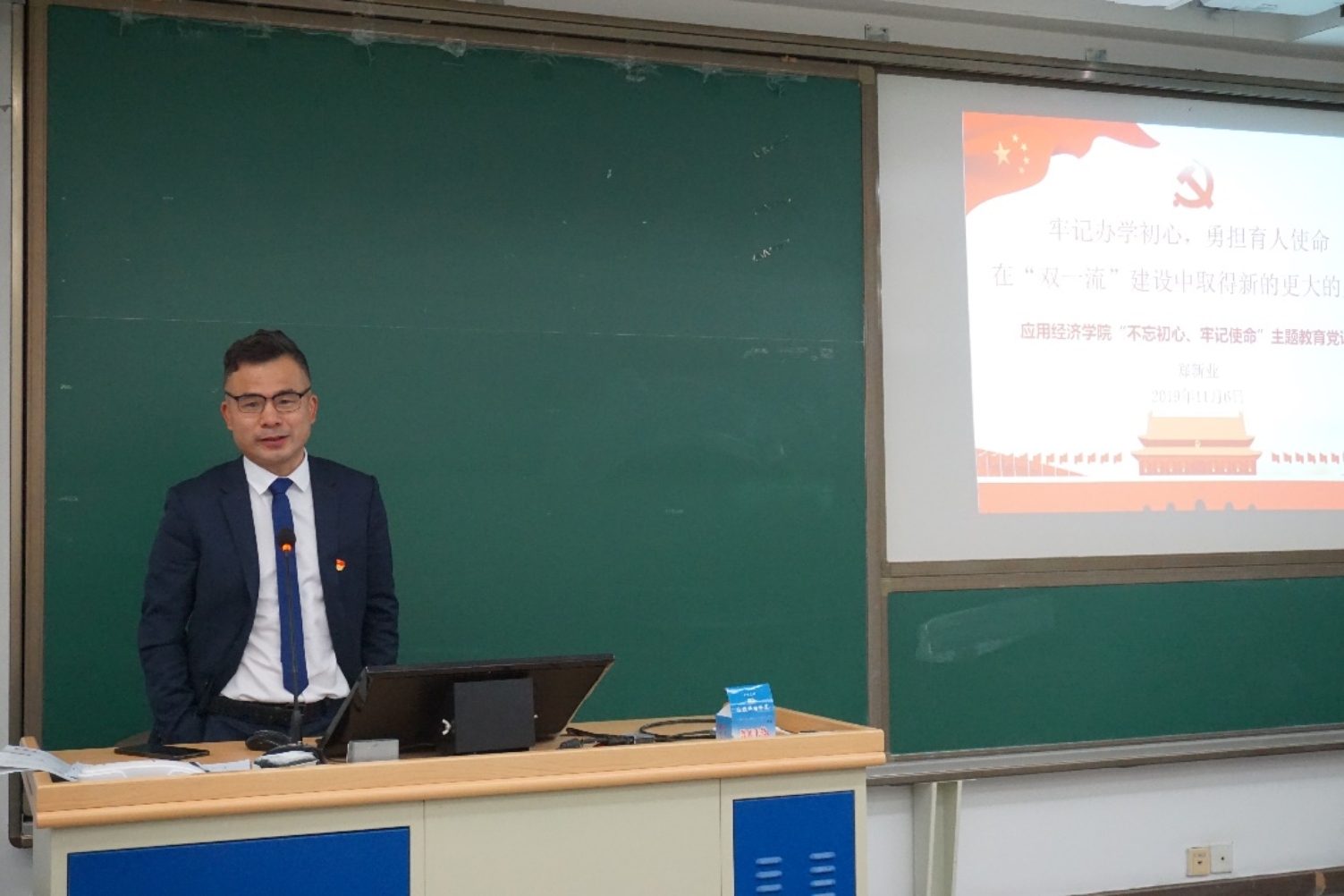 经理、党委副书记郑新业以“牢记办学初心,勇担育人使命——在‘双一流’建设中取得新的更大的成就”为题讲授主题教育党课。郑新业首先为大家梳理了共产党人的初心使命,明晰了办学道路与衡量标准的实践要求。结合公司工作,他总结到:落实公司党的领导方面起步不错,但任务重、道路长;立德树人的现实任务让人夜不能寐,必须扎根中国大地搞研究,紧抓快干。针对问题反思,他指出要依托体制机制,全程落实党的领导;以习近平新时代中国特色社会主义教育思想为指导,探索人才培养方式,立德树人,培育“三有”人才;以习近平新时代中国特色社会主义经济思想为引领,砥砺初心,巩固和深化“双一流”团队建设。