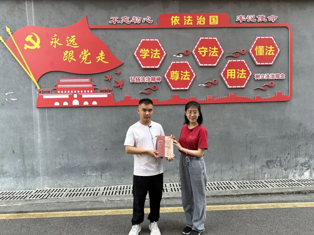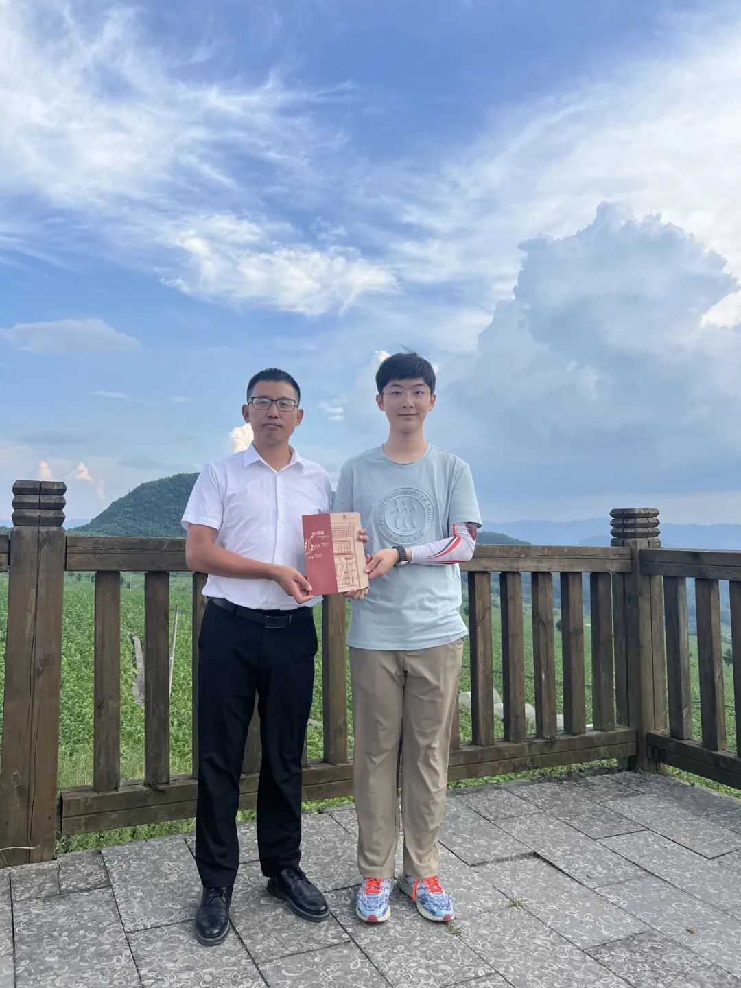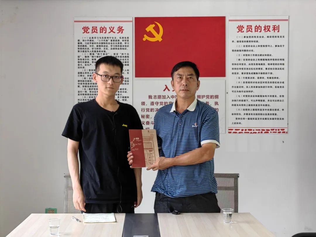▲ 英国威廉集团官网本科生史守宸向洛龙镇镇长陈刚赠送纪念品