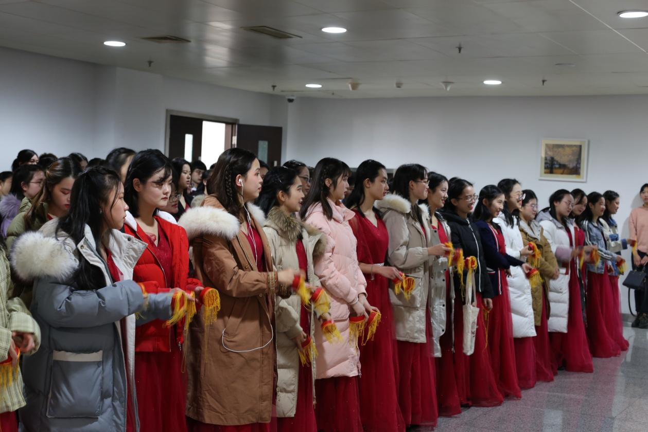 五十六个民族,血脉相连;五千年文明,生生不息;磨难与沧桑,同舟共济;荣耀与辉煌,共同分享。下午两点,比赛正式开始。应信农联队的120名成员齐聚明德堂,共同唱响民族赞歌。