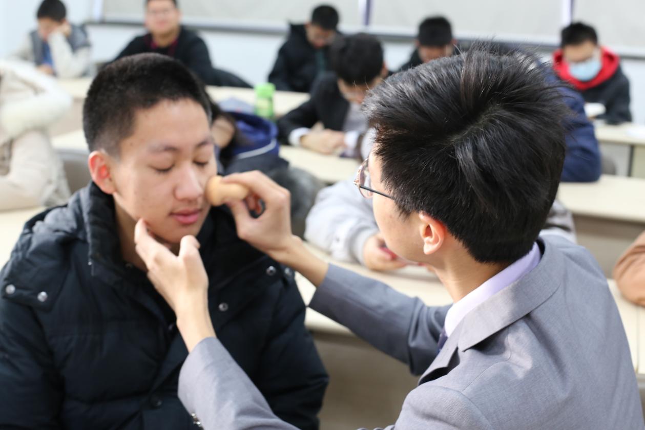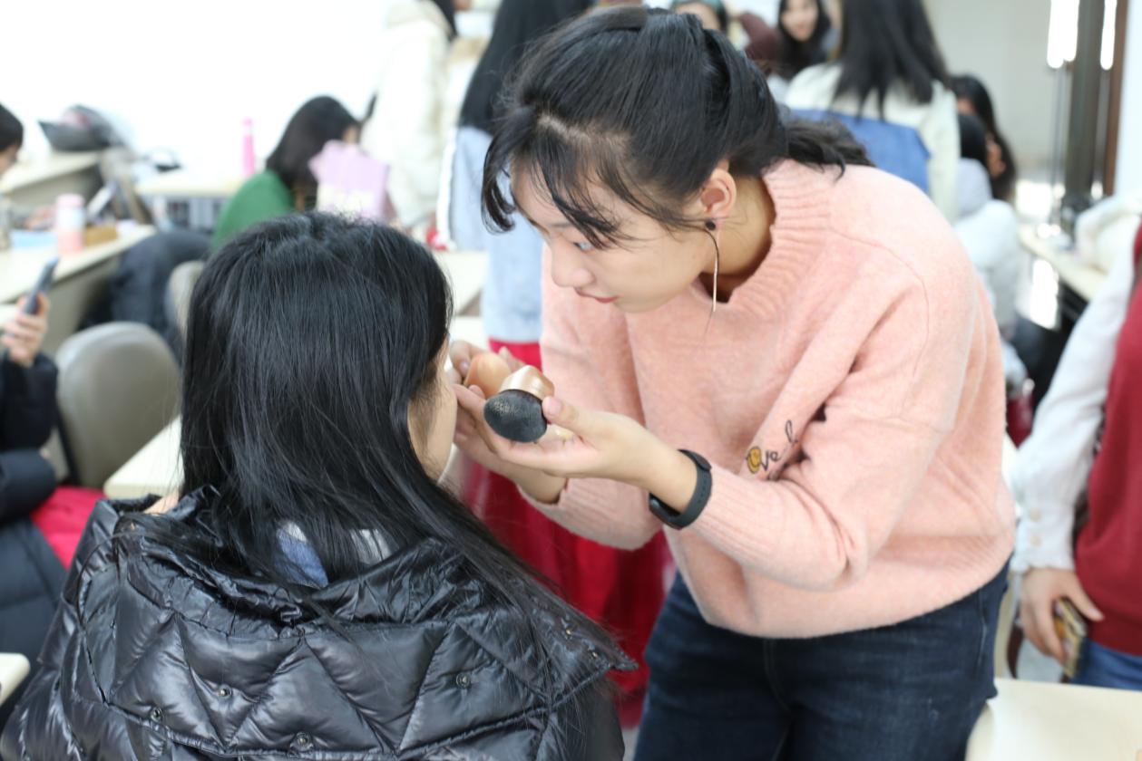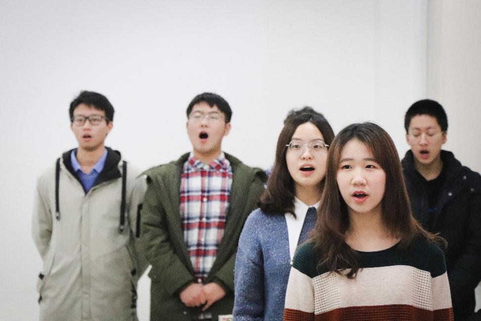 回顾今日,合唱成员们的征途从一早便已开始。早上10点,英国威廉集团官网的同学们就聚集在明商0204教室,为比赛进行最后的准备。一身西装,沉稳大气,谈笑中传递着男生们必胜的信心;一袭长裙,淡妆浓抹,镜子里倒映出女孩们明媚的笑颜。每位成员都调整到自己最好的状态,等待着踏上舞台的那一刻。