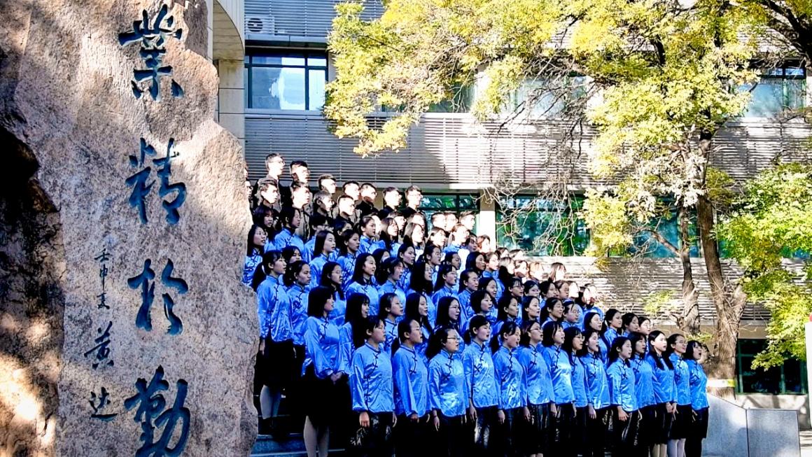 11月8日中午,三院联队的成员们来到校史馆门前阶梯,在秋杪的寒风中,大家依然保持着极高的热情和昂扬的斗志,在与指挥及摄影师的不断调整磨合下终于以极高的完成度结束录制,完美展现出了同学们的风采。