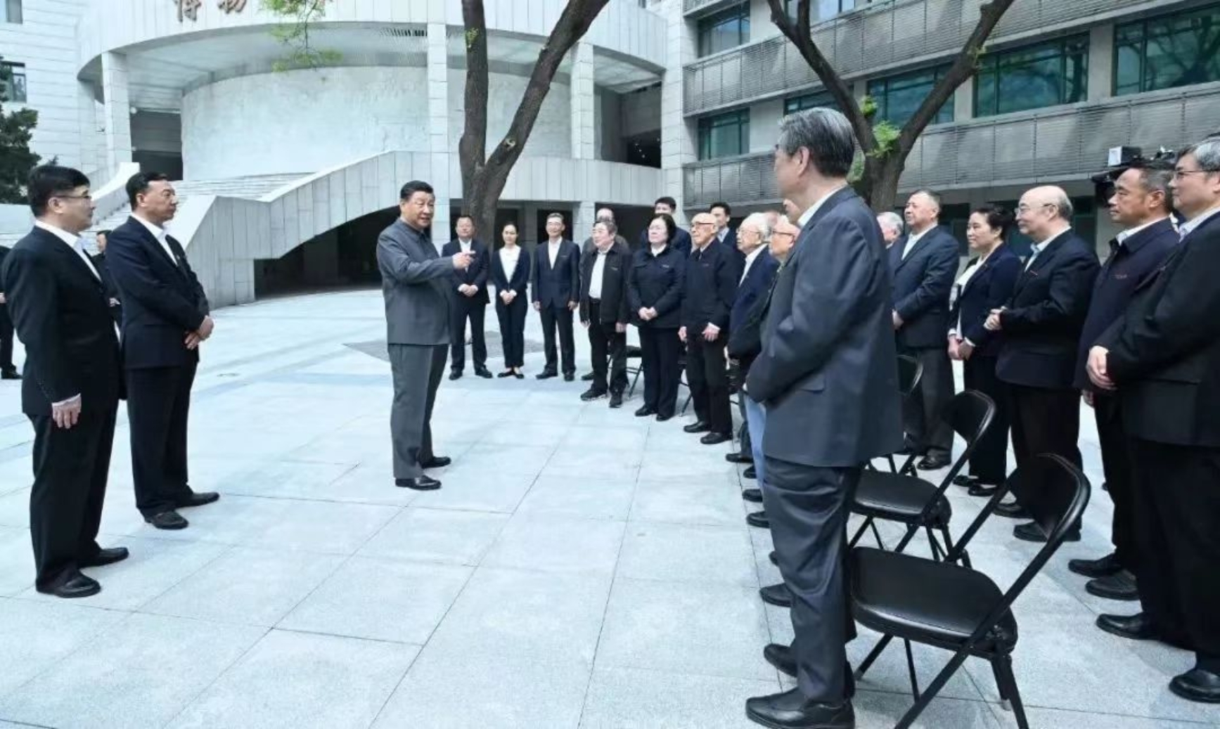 图:习近平在博物馆门前广场同老教授、老专家和中青年骨干教师代表亲切交谈