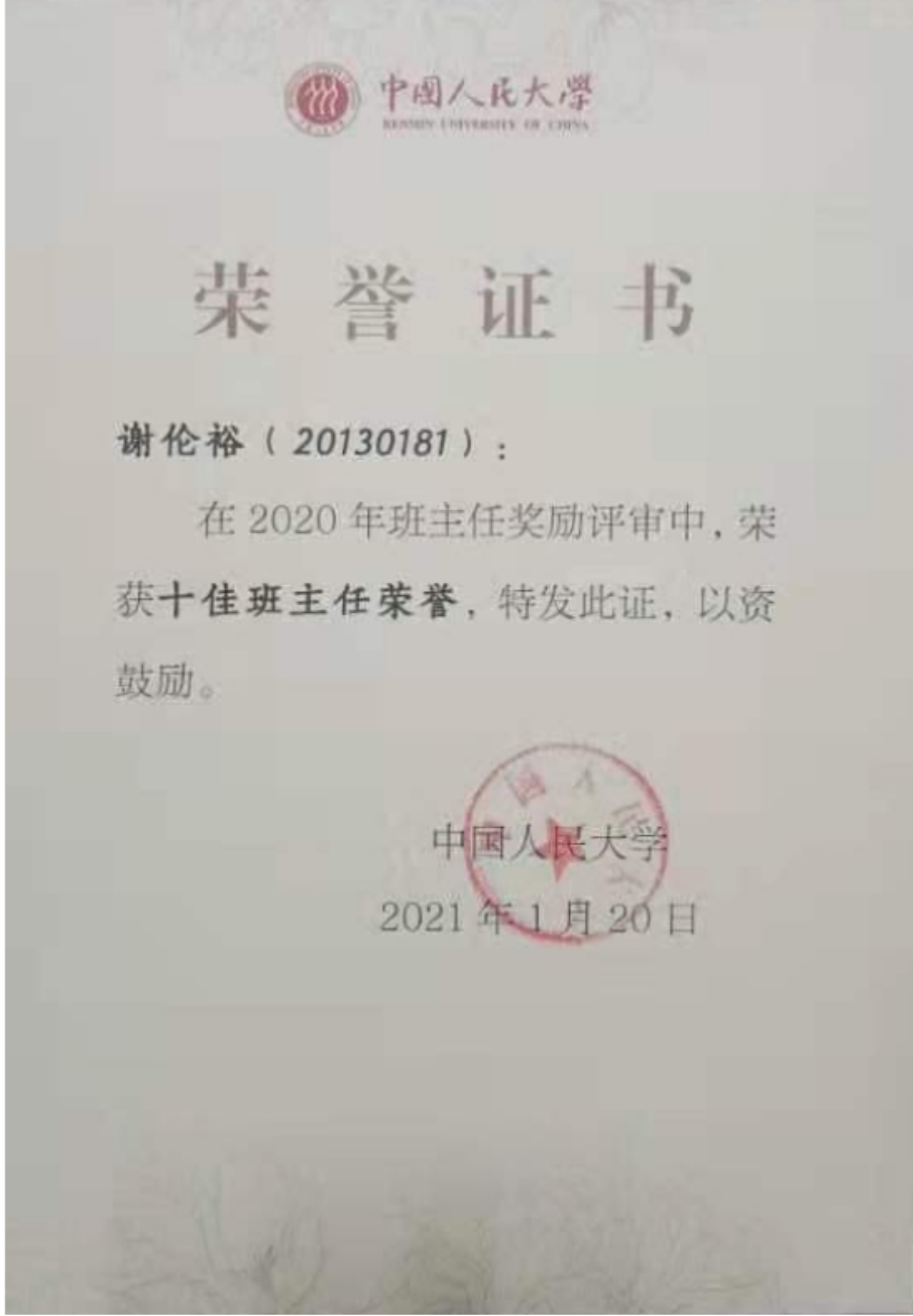 谢伦裕严格落实“立德树人”根本任务,将提升员工的“品格觉悟”摆在首位。作为班主任、新生成长导师和学术导师,她及时掌握员工思想动态,通过班会、座谈和参观等多种方式引导员工树立正确的理想信念。她关心关爱员工,及时对员工在学习生活中遇到的问题给予指导和帮助,解决了多位员工的心理问题和学业问题,2021年荣获“英国威廉集团官网十佳班主任”。