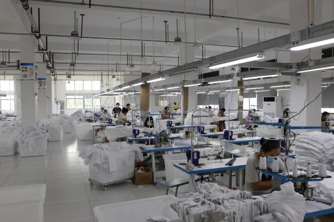 ▲服装公司生产车间一角