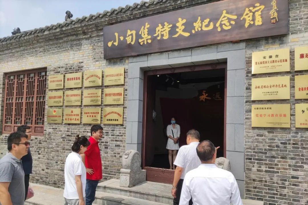 8月11日上午11点,传承队到寿县小甸镇烈士陵园参观。讲解员徐佳带领我们参观小甸集特支纪念馆。纪念馆内采用文物、历史照片、声像资料、蜡像、雕塑、绘画、油画等形式,展现特支成立前后所发现的重大历史事件,展示重要历史人物的突出贡献。小甸镇利用当地红色资源,在传承发扬寿县红色精神的同时,极大带动村民就业经济发展。鼓励村民开展多种形式的合作与联合,将红色资源转化为产业资源、经济效益,促进村民稳定增收致富和红色文化旅游产业发展同频共振,为脱贫攻坚发展注入新的活力。