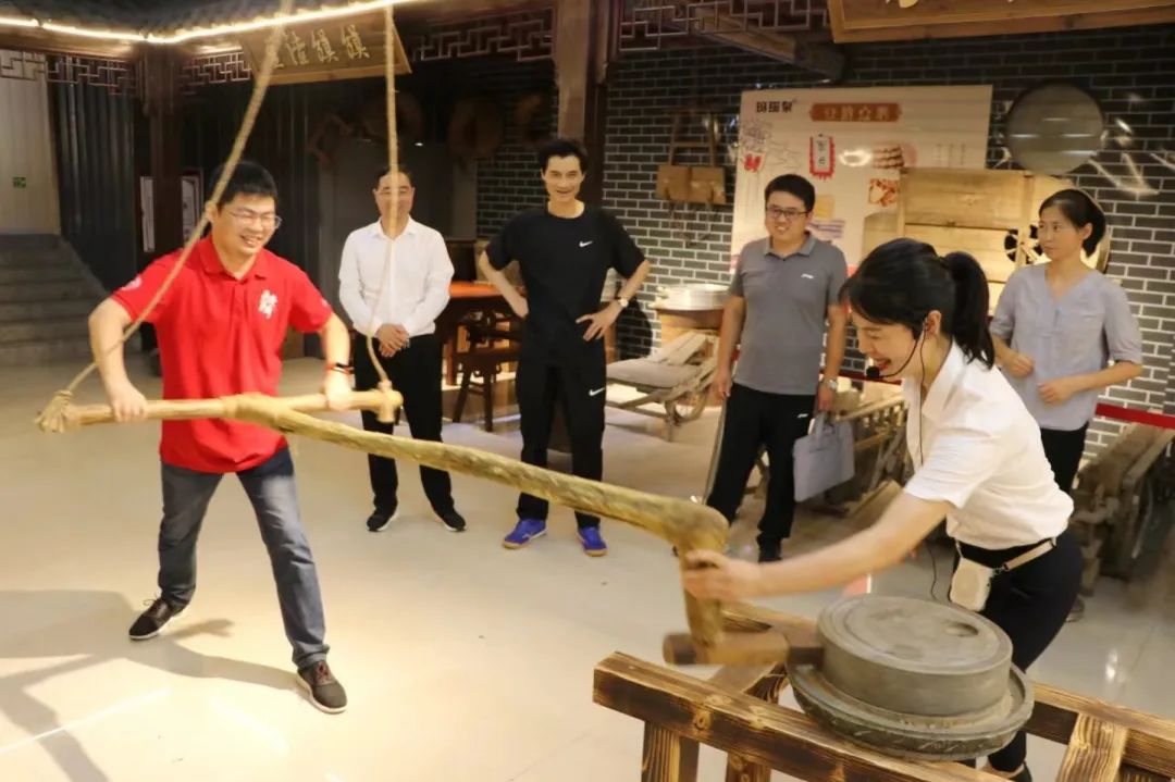 ▲李浩然老师体验磨豆腐工艺