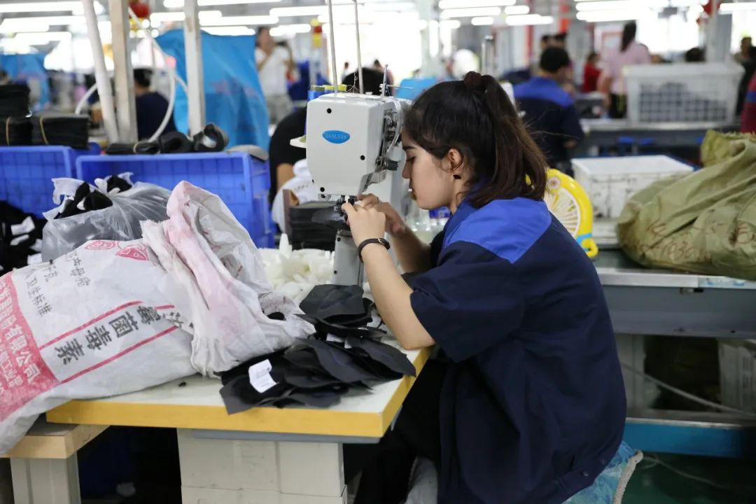第一站我们来到了皮山鞋袜产业园,这个产业园是安徽省援建皮山县的重要产业项目。根据负责人的介绍,建设产业园的初衷,是要抓住沿海地区长三角、珠三角产业转移的机遇,充分发挥皮山县土地成本、劳动力成本的优势,“筑巢引凤”提升地方承接产业转移能力,推动边疆地区转移和发展制造业,解决皮山劳动力就业和经济发展。安徽援疆和皮山县政府承担园区建设工作,引进安徽一家企业负责园区运营管理,目前已从内地引进了9家鞋袜生产企业。