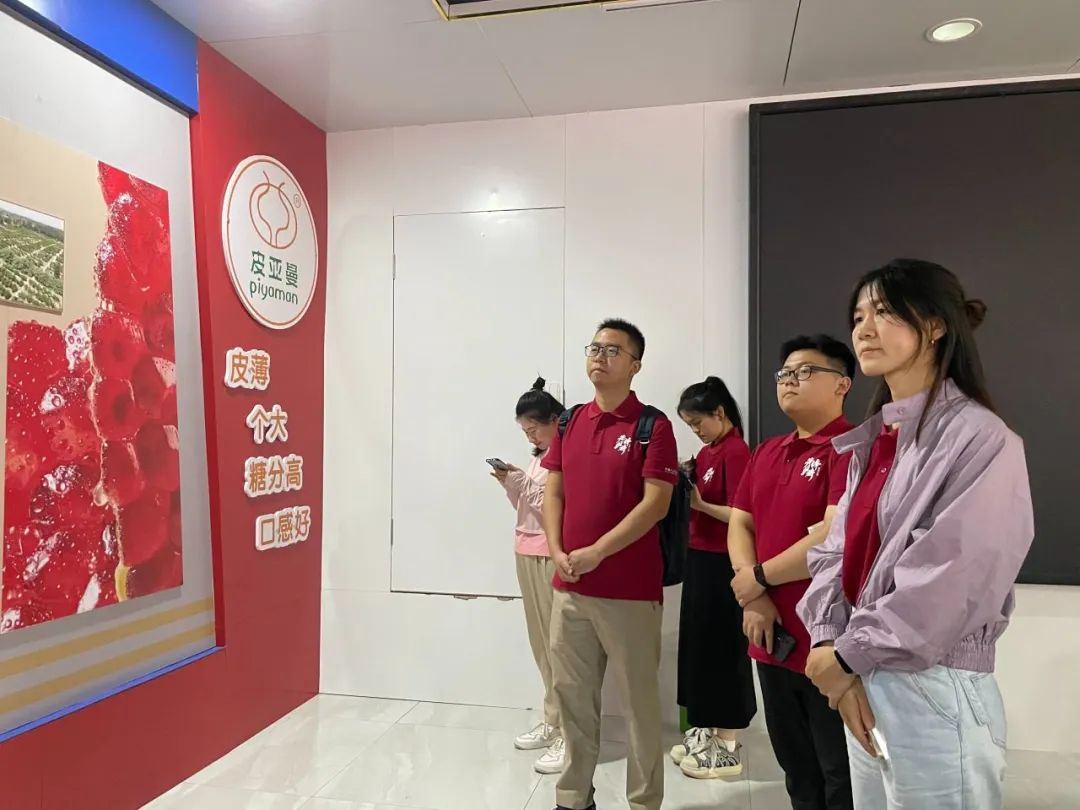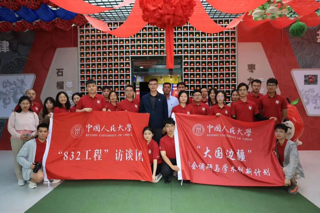 ▲调研团在石榴之乡皮亚勒玛乡的石榴墙前合影