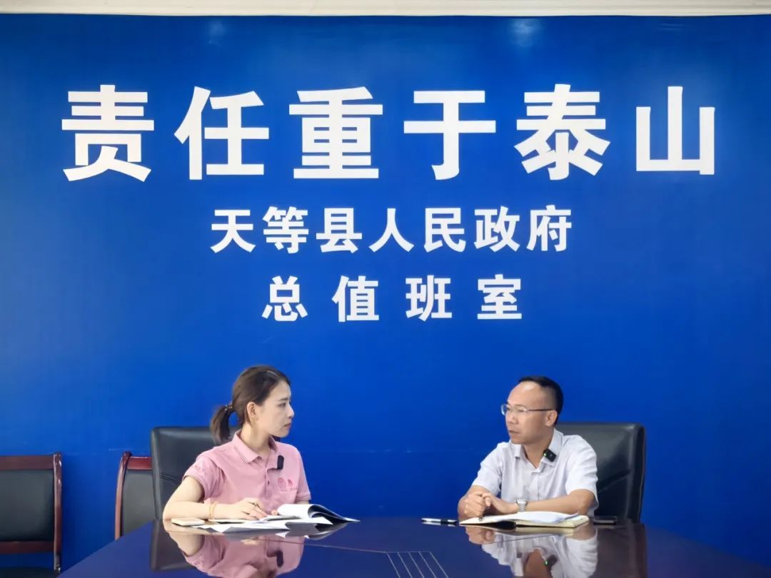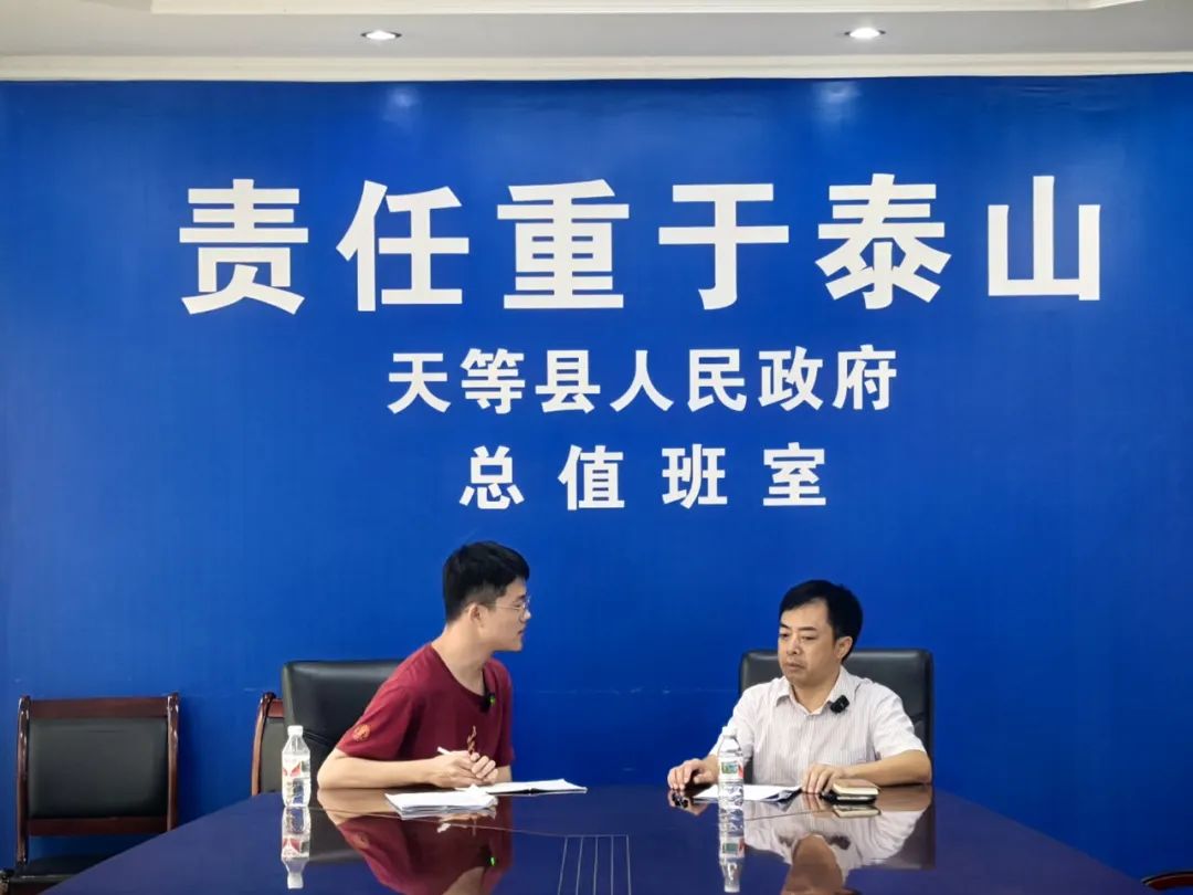 ▲卢昂荻访谈天等县农业农村局局长(原福新镇镇长)梁江涛