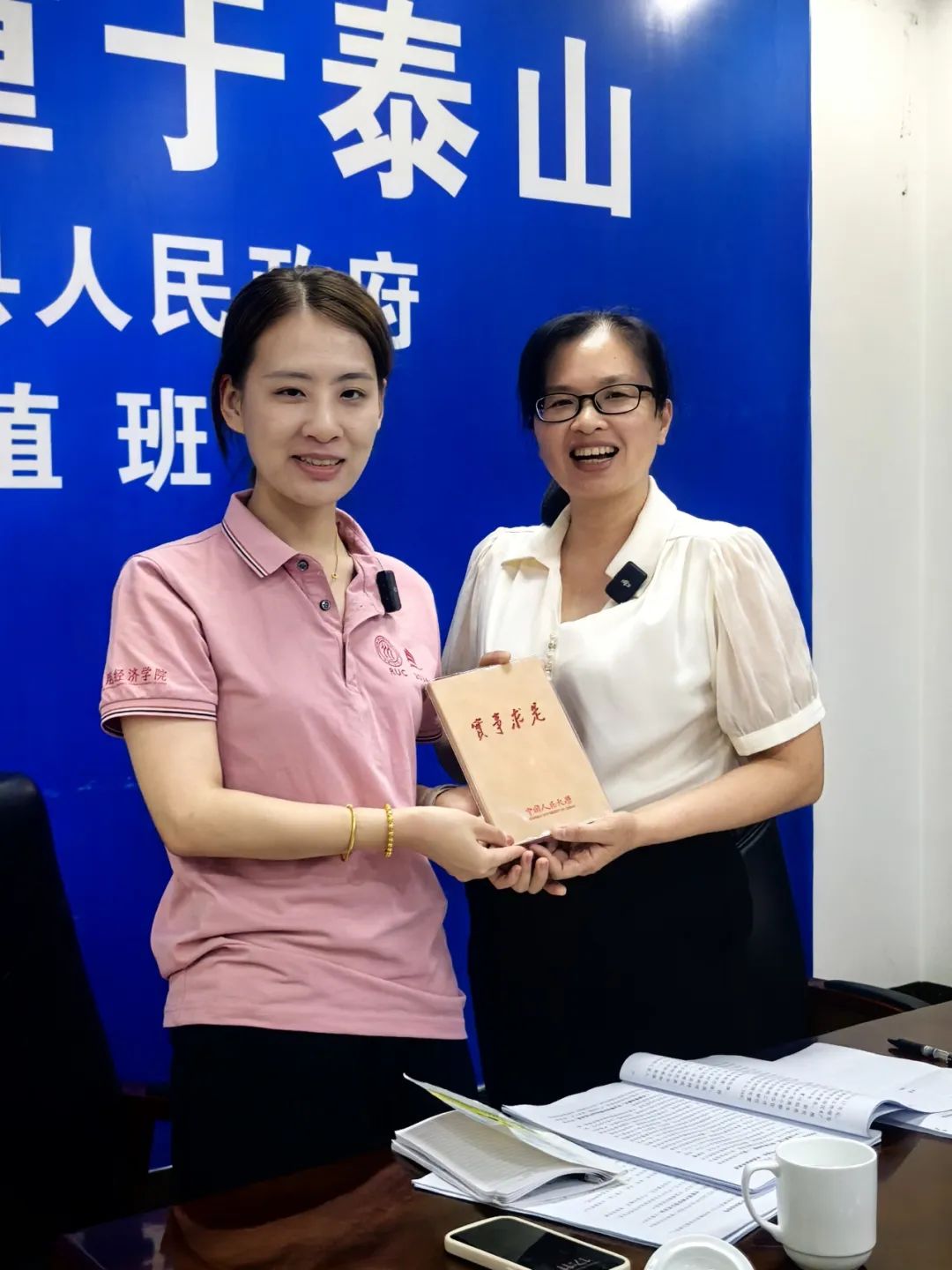 ▲本科生王思奕访谈天等县天等镇镇书记冯新吉