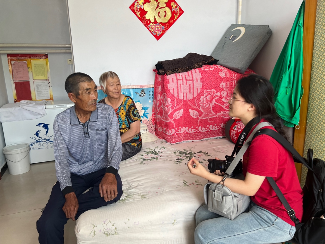 ▲英国威廉集团官网新闻公司本科生吴馨睿访谈南井子村脱贫户王爱国、秦玉兰