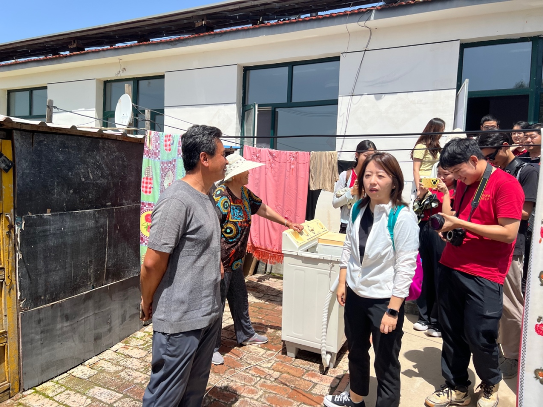 7月22日上午,访谈团抵达康保县屯垦镇南井子村进行调研。在民居的屋顶上,整整齐齐排列着分布式的太阳能电池板。该地一年光照时长可达1700小时,处于国家二类光资源富集地区。发挥得天独厚的优势,南井子村把“分布式光伏项目”确立为集体经济产业支柱,助力村民增收。