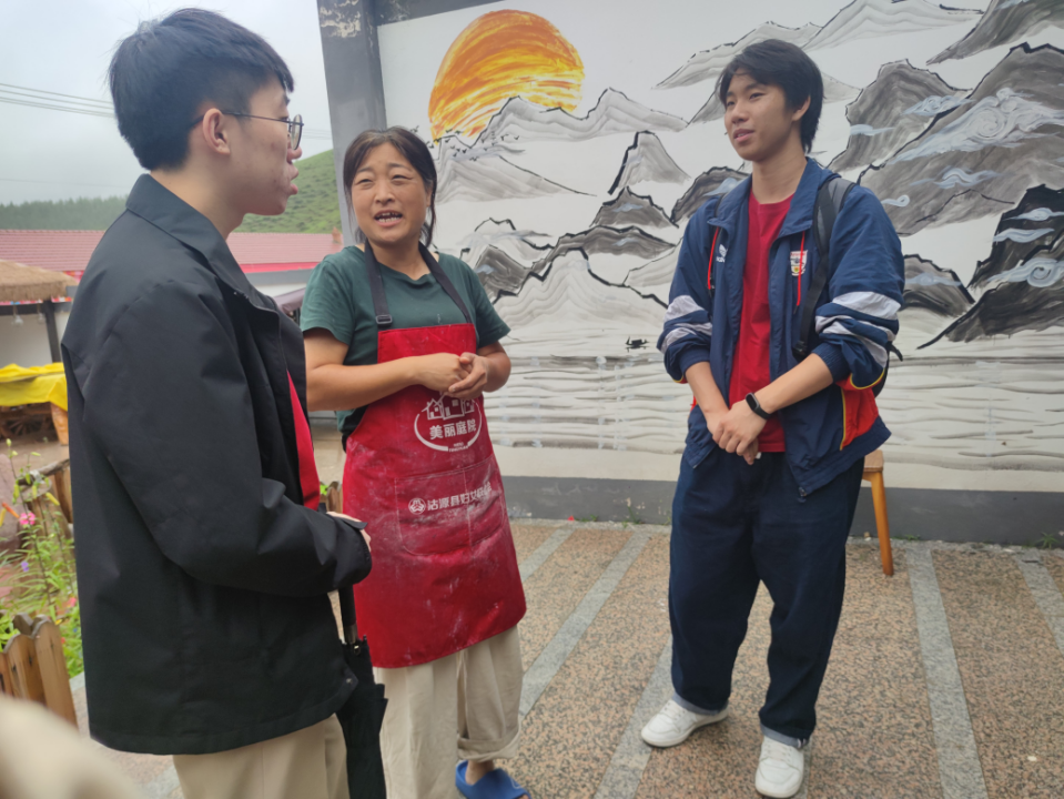 ▲访谈团参观老掌沟村民宿,同学们与经营民宿的阿姨交流