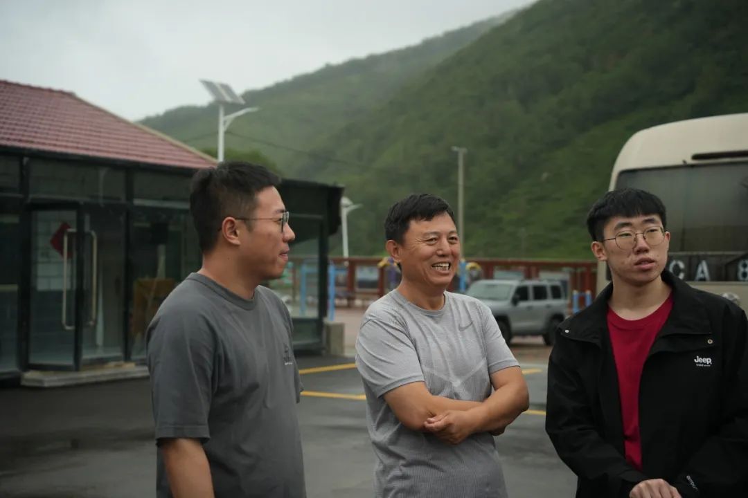 ▲访谈团老师同学与老掌沟书记张积凯交谈