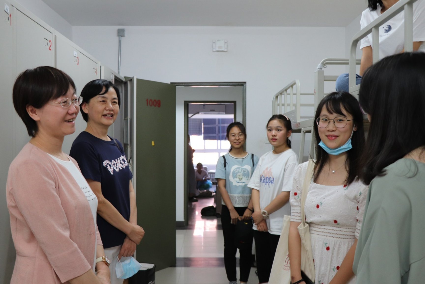 下午,党委书记宋东霞,副经理黄隽,副经理陈占明分别前往寝室看望慰问新生。宋东霞老师和黄隽老师认真询问了同学们生活的各个方面,耐心叮嘱同学们要保护好自己,开开心心报到、安安全全生活。陈占明老师细致地关心同学们到校后的心理状态,提醒同学们遇到困难与问题要及时与班主任和公司联系。