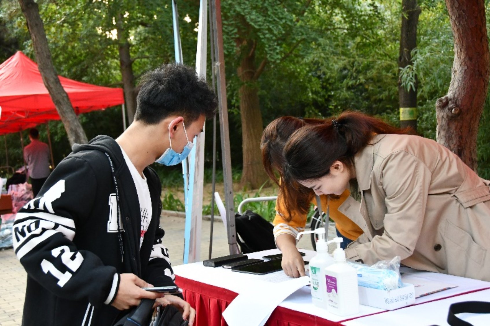 迎着秋日清晨的微凉,踏着熹微的晨光,公司工作人员早早赶到求是园北侧的展位,认真检查着各项准备工作,志愿者们也各司其职,翘首以盼,共同等待新生的到来。