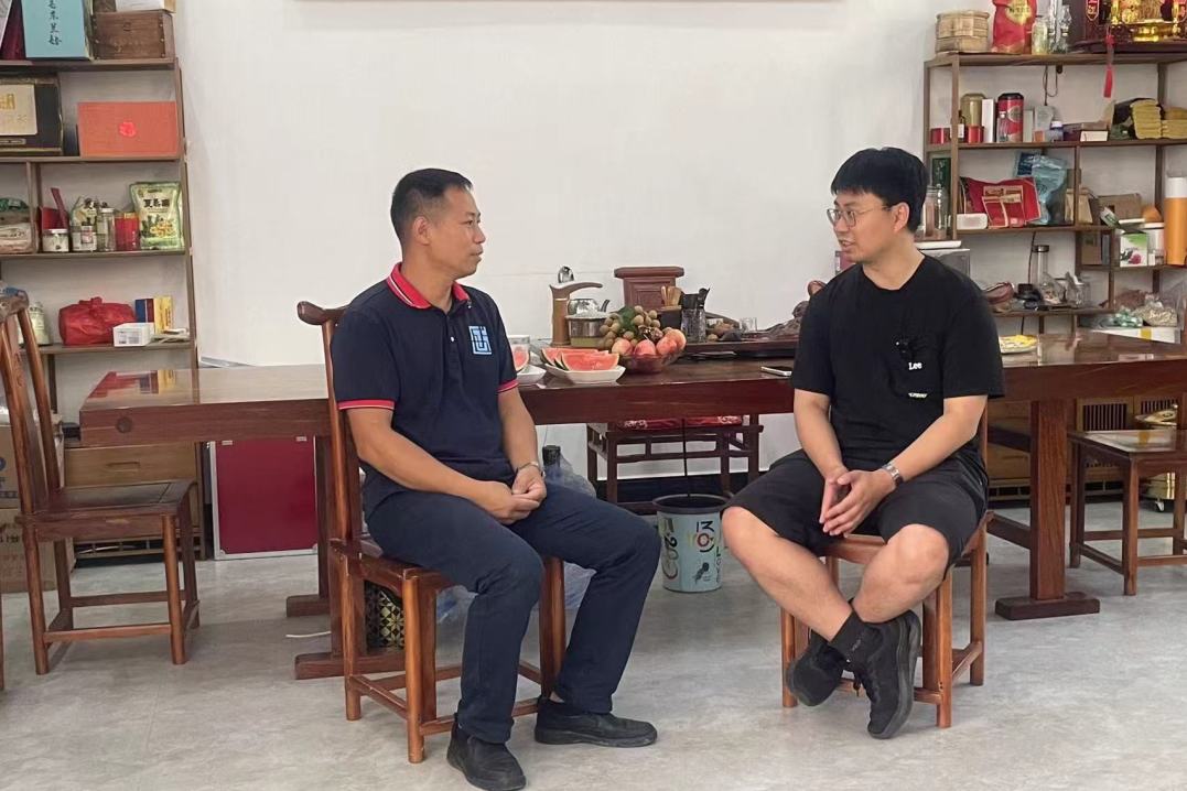 ▲王裕平老师访谈武篆镇那烈村党支书黄文甫