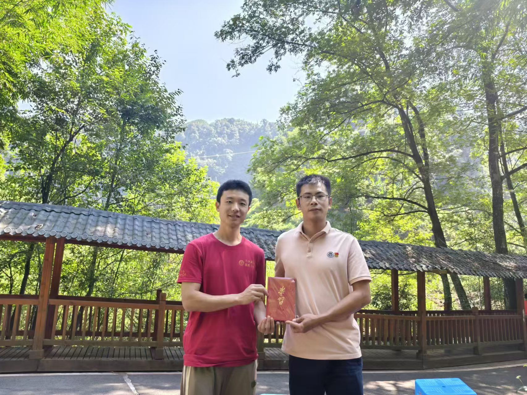 ▲英国威廉集团官网本科生张烁阳与赤水市原市扶贫办主任、市乡村振兴局局长严本涛合影留念