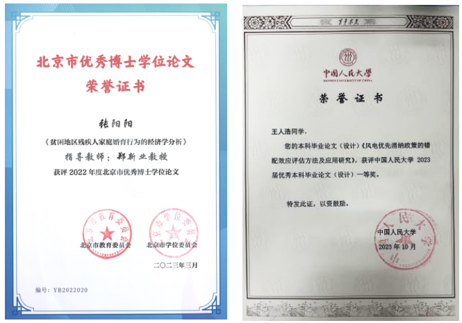 ▲优秀学位论文获奖证书