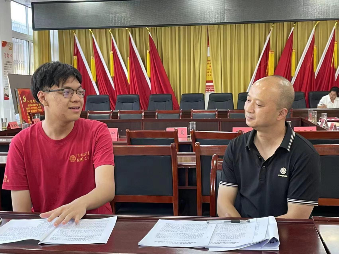 ▲调研团本科生姜萍萍访谈云雾镇党委书记谭忠银