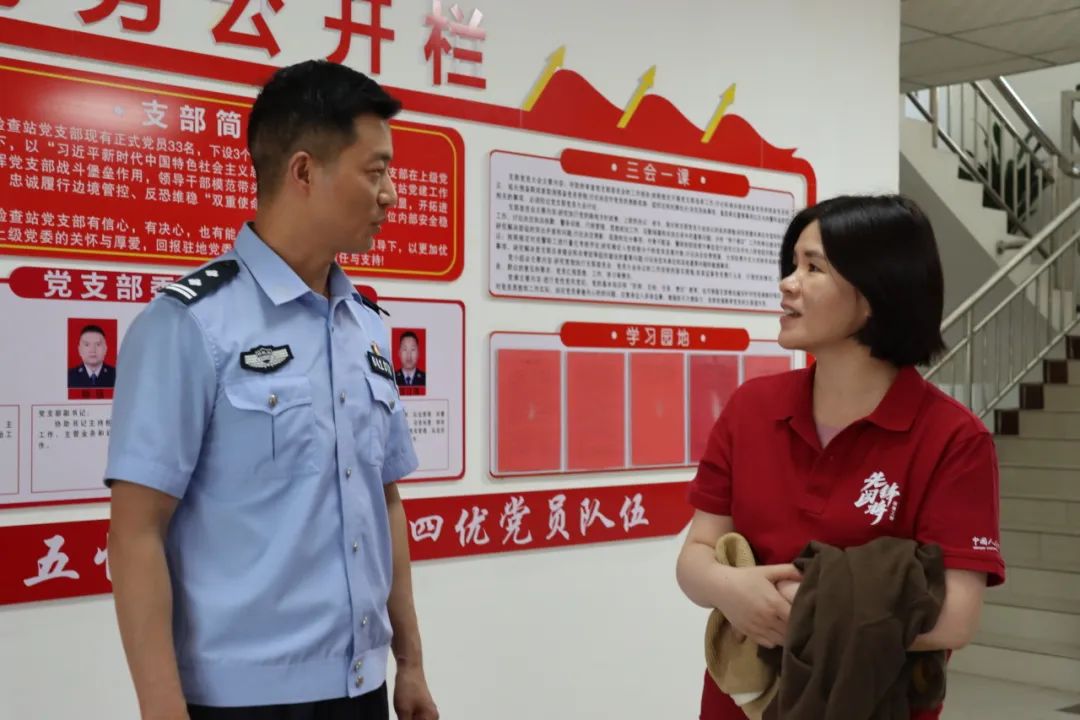 ▲ 黄滢老师和余磊指导员交流