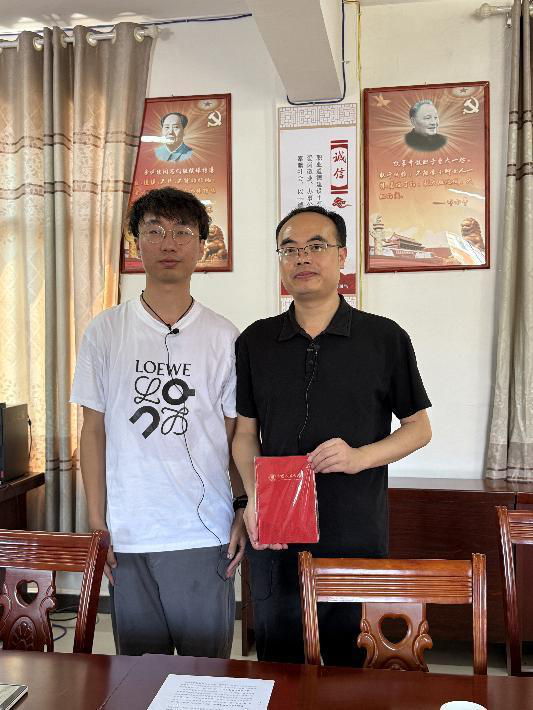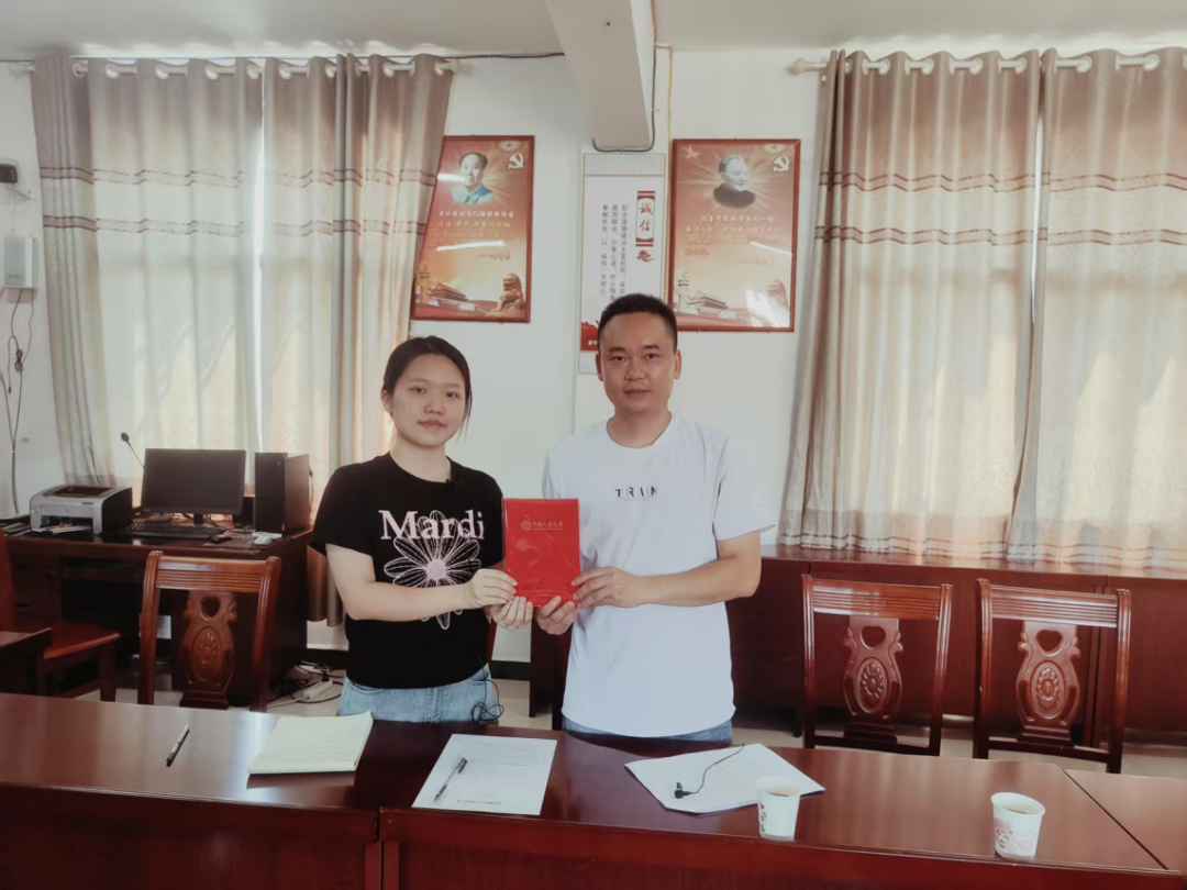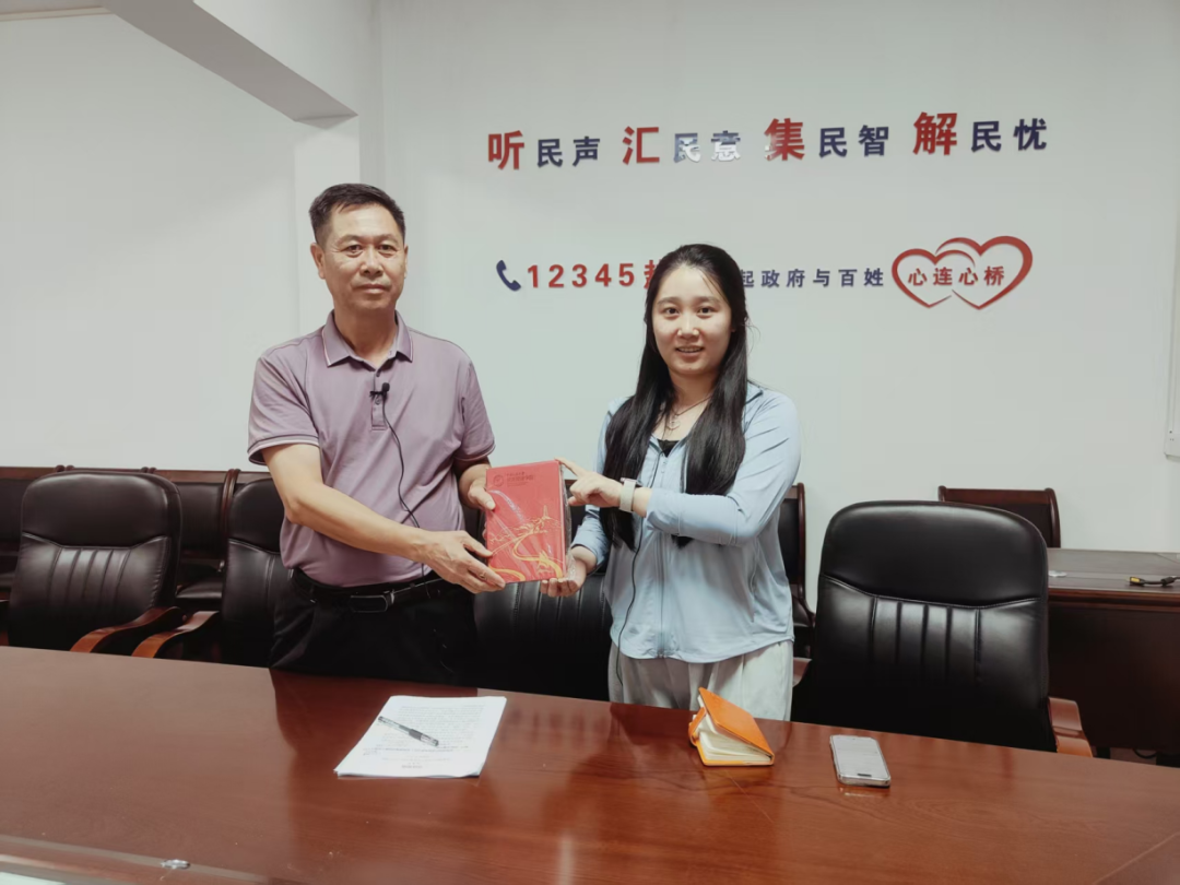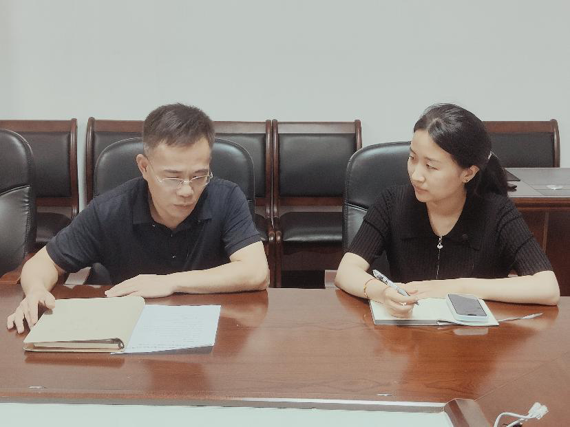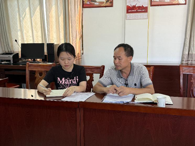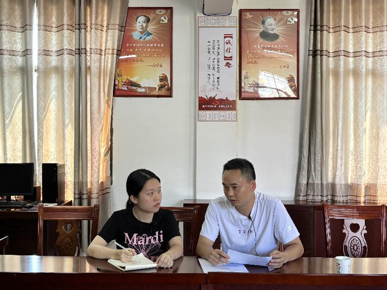 ▲本科生杨乐怡访谈县商务科技和工业信息化局驻村第一书记何含作