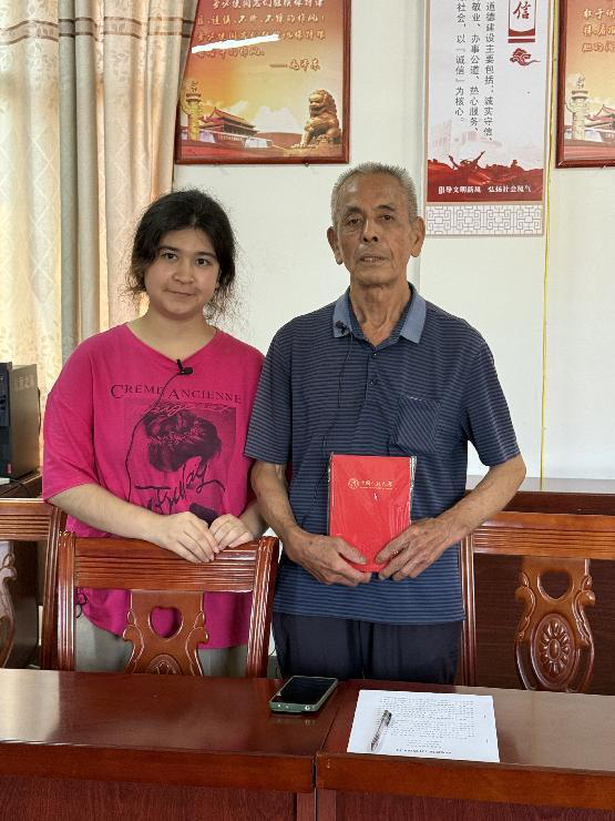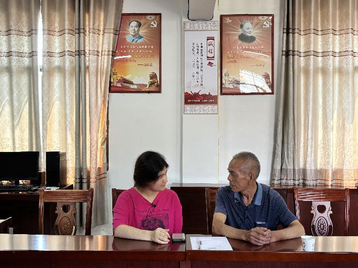 ▲本科生杨乐怡访谈菁芜洲镇车控村党支部书记谢言亮