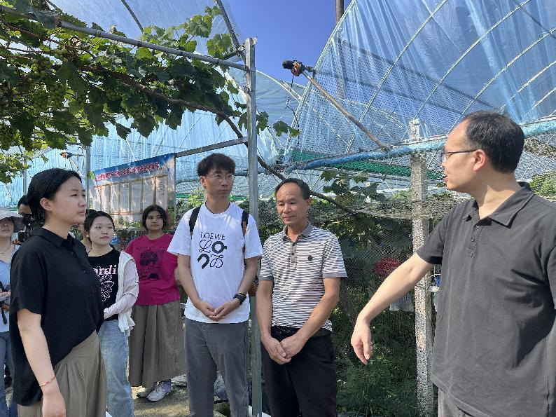 在85亩特色水果产业园内,村党支部书记谢言亮向调研团详细介绍:“我们推出的‘30平方米/年600元’共享菜园模式,既满足了城市居民的田园情怀,又盘活了闲置土地资源。”目前,园区已种植阳光玫瑰葡萄、红心猕猴桃、火龙果等特色水果,配套开发的共享菜园吸引200余户城市家庭认租,年接待游客超1.2万人次,带动周边农户户均增收8000元。